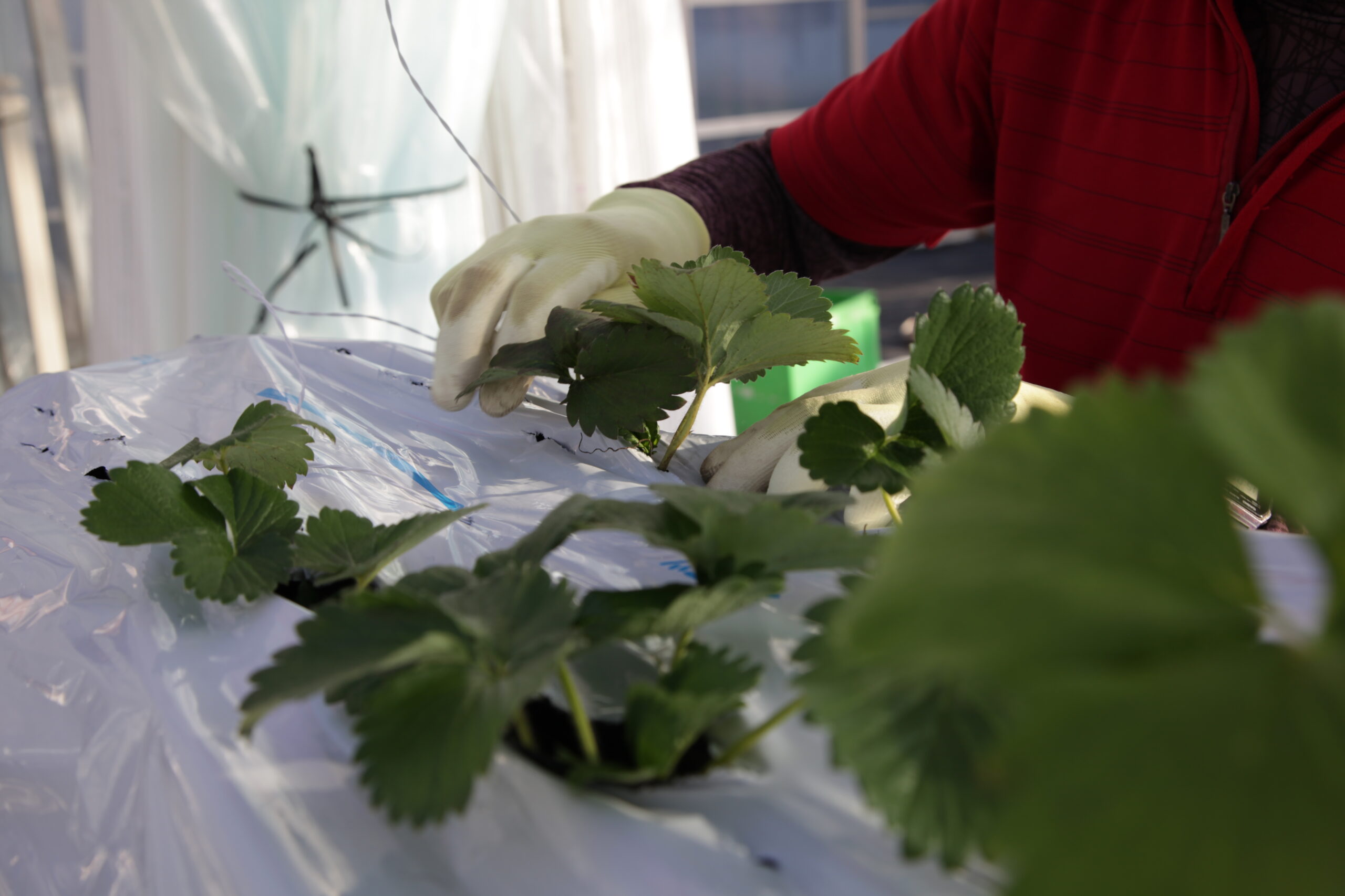 マルチ張りボランティアさん、大募集!!いちご栽培にとって、とても需要な工程であるマルチ張り。マルチとは、写真に写っている白い巨大なビニールシート状のものの事です。このマルチで畝をすっぽりと覆い、いちご苗の部分に穴を開け、苗だけをぴょこっと出...